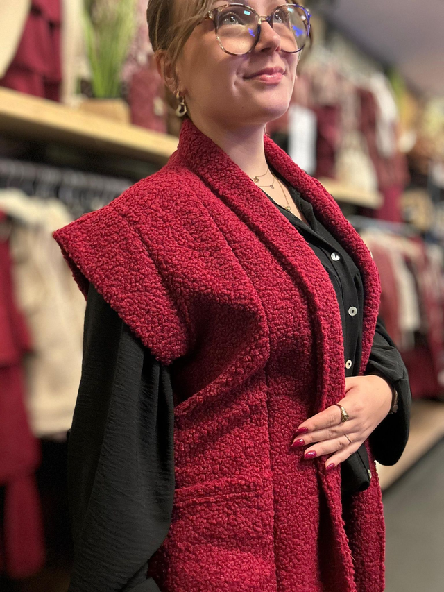 Gilet lang bouclé bordeaux